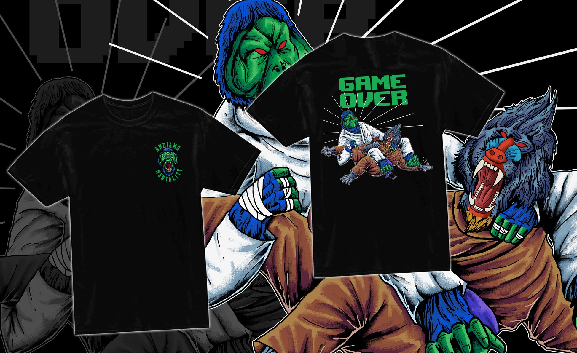 "Upgrade your wardrobe and performance with our Andiamo Mentality GURU T shirt. Made of high quality, soft material, this unisex t shirt showcases the dominant BJJ lord, the guru orangutan. Perfect for both daily wear and advanced training, it's a must-have for any martial arts enthusiast."